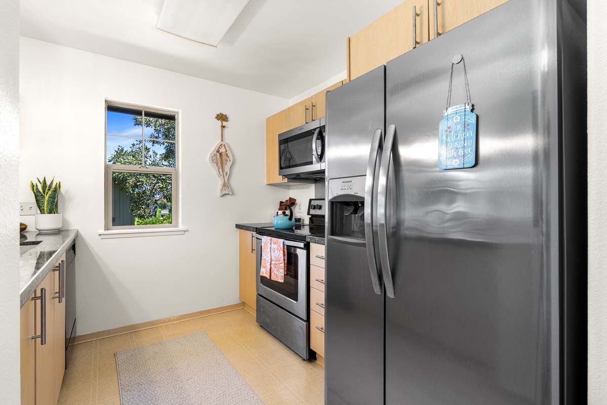 Welcome to your second-floor, one-bedroom, one-bath condo at Makana Kai in Waikoloa Village. Updated in 2025 with new carpet and fresh interior paint, you’ll appreciate the bright, welcoming atmosphere, the upgraded kitchen appliances & countertops, with the spacious pantry that makes everyday living easy.
