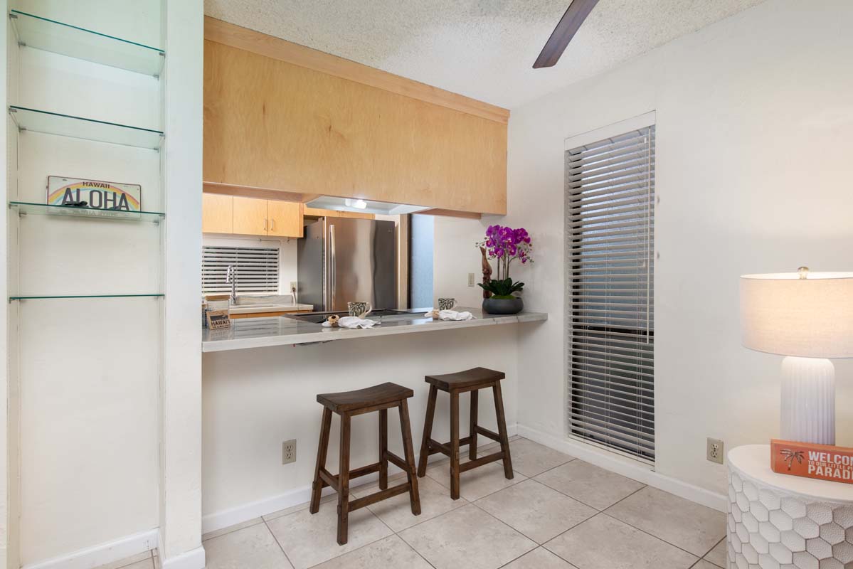 Enjoy the convenience of being just steps from the Highlands Shopping Center and only minutes to the Waikoloa Village community pool, tennis courts, and scenic Robert Trent Jones Jr.-designed 18-hole golf course.