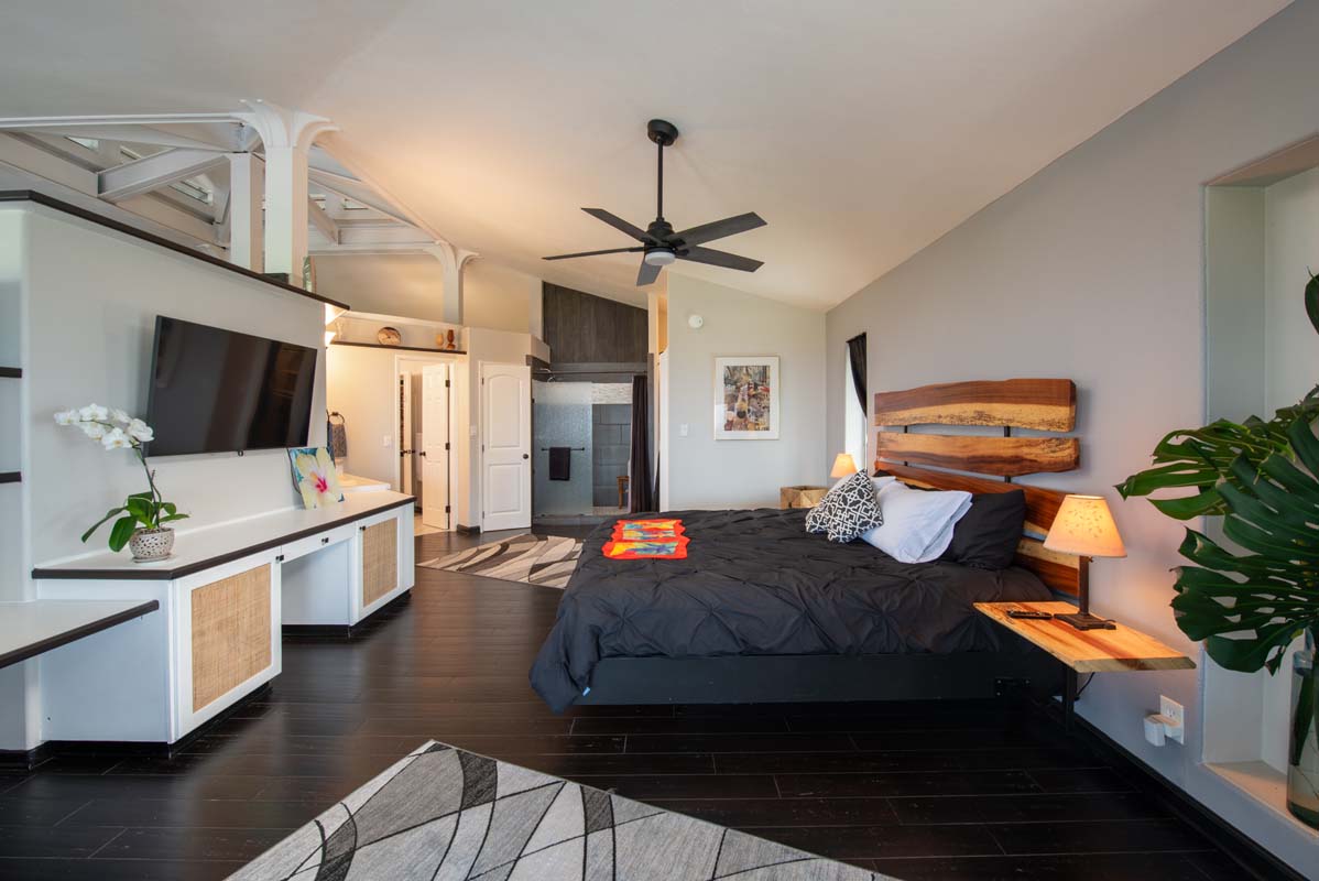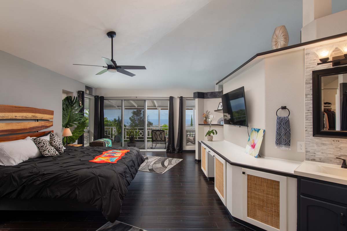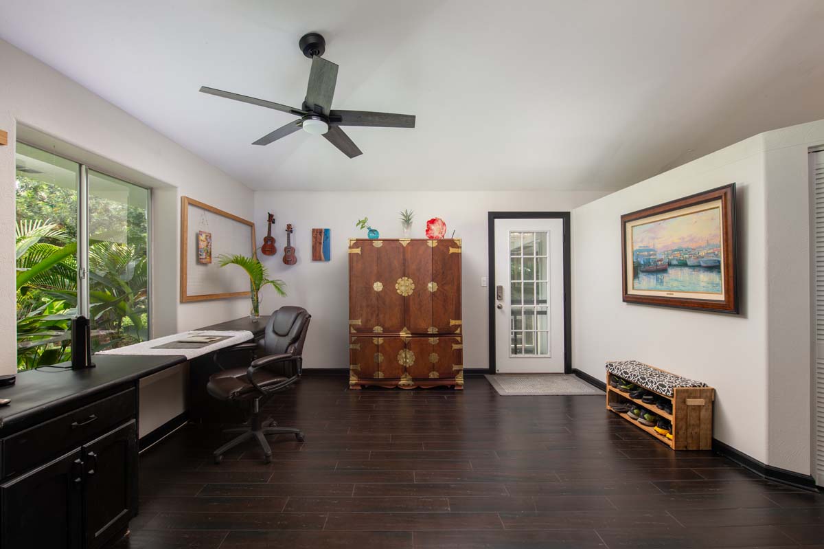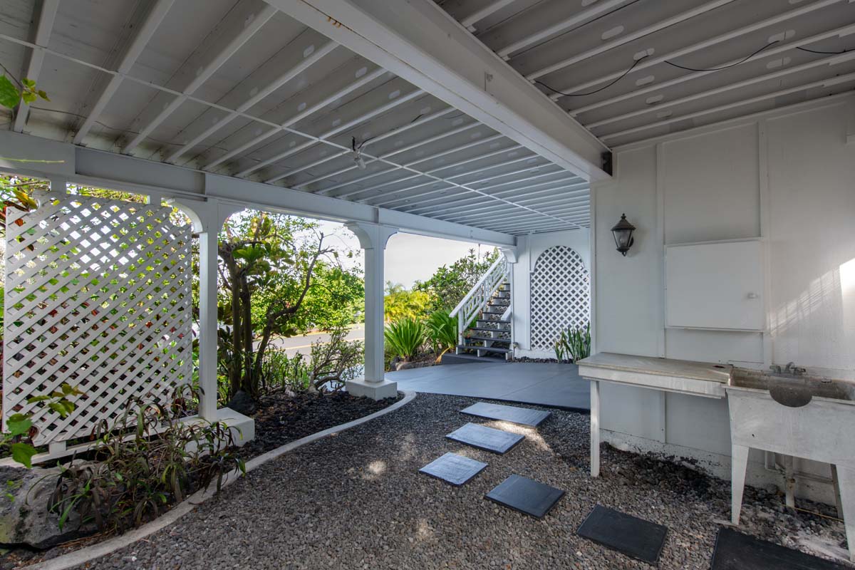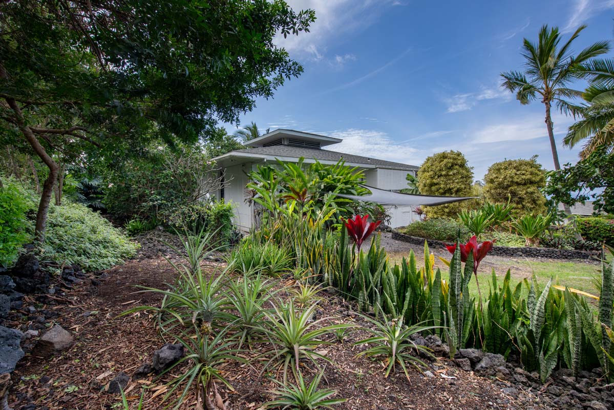 The property is ideally located near major shopping, dining, schools, beaches, and Kona International Airport, blending privacy with everyday convenience. Step outside and explore your own tropical retreat, complete with mature fruit trees including mango, starfruit, papaya, banana, and more. Lush tropical landscaping and a variety of flowering plants create a vibrant garden setting.